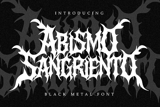Use it for heavy metal-themed posters, music branding, album covers, tattoo designs, digital art projects, video game graphics, horror movie titles, dark-themed blogs, fantasy book covers, or merchandise design. Its aggressive nature makes it perfect for projects needing an impactful and memorable look.